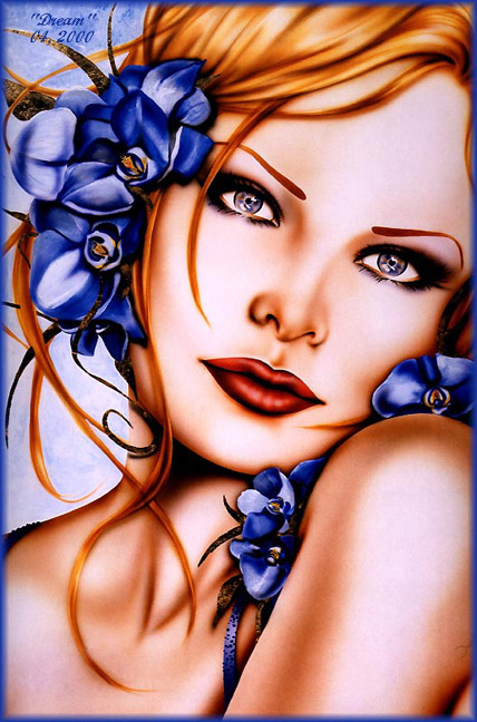 Long gingery hair around, 4'11 in height, slim of build with bluey grey eyes. Has a large belt with tools tucked in. Often has different types of flowers in her hair.